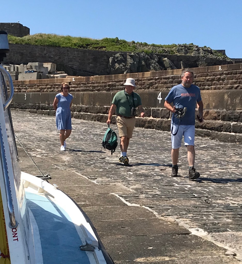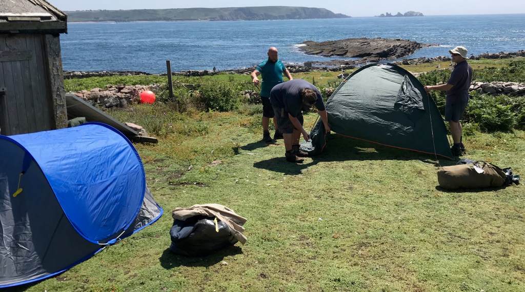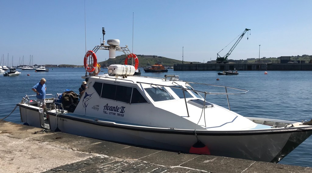 The Avante II, skippered by Dave Venn, took us and our gear across – it didn’t take long but the tides and currents are treacherous. When we arrived, the dingy had to take us into a gully where we climbed over rocks to get ashore.