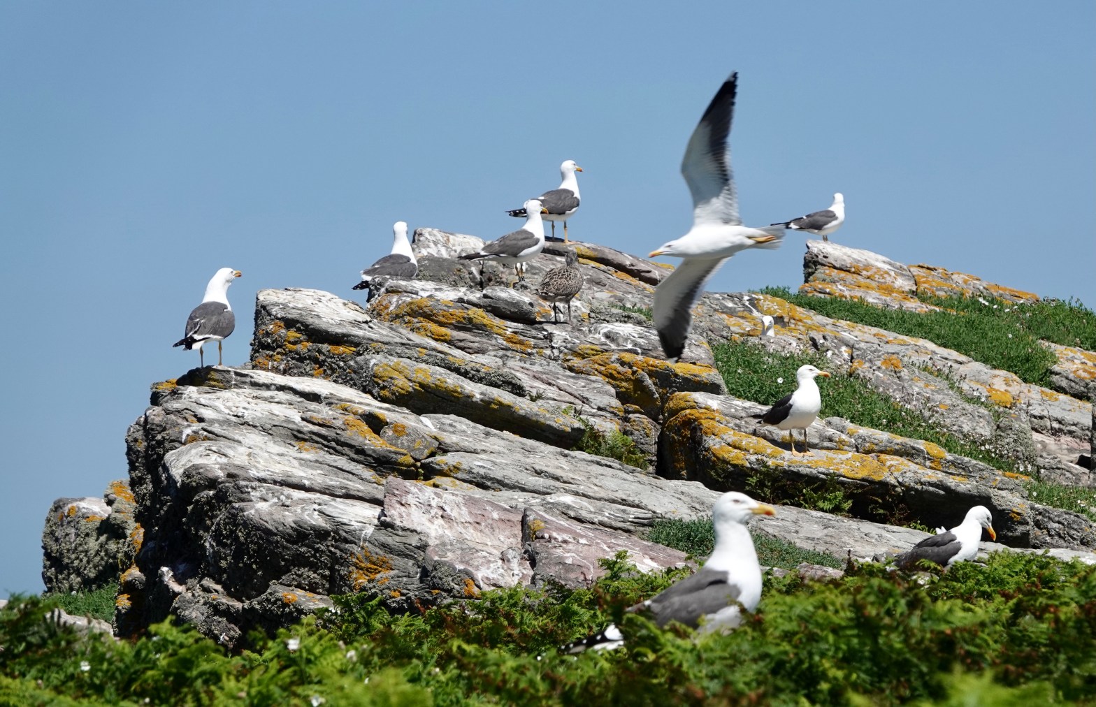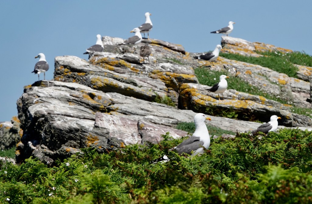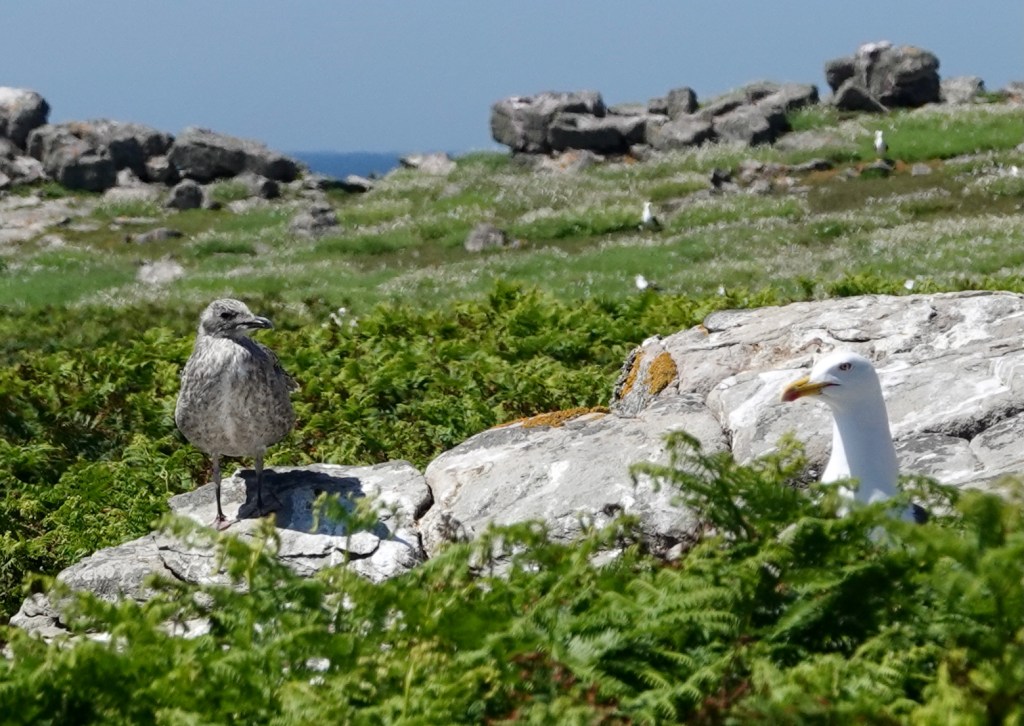 Over the three days, there was hardly a cloud in the sky so gull ringing was done in the morning or late in the afternoon. The island is very rocky – unlike the rest of the Channel Islands, it is sandstone rather than granite – with swathes of bracken and Sea Campion.