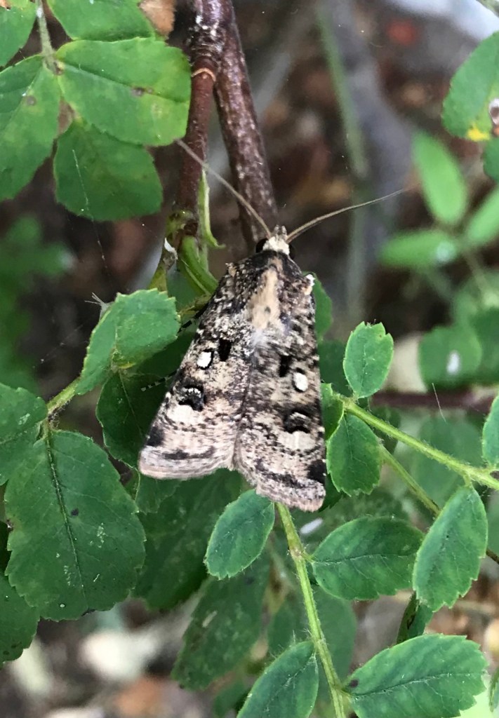 Also some of the other seventeen species present were Bright-line Brown-eye, two Burnished Brass, Oak Hook-tip, three White Point and a Yellow Belle. The light is very poor so only a couple of photos taken with my phone.