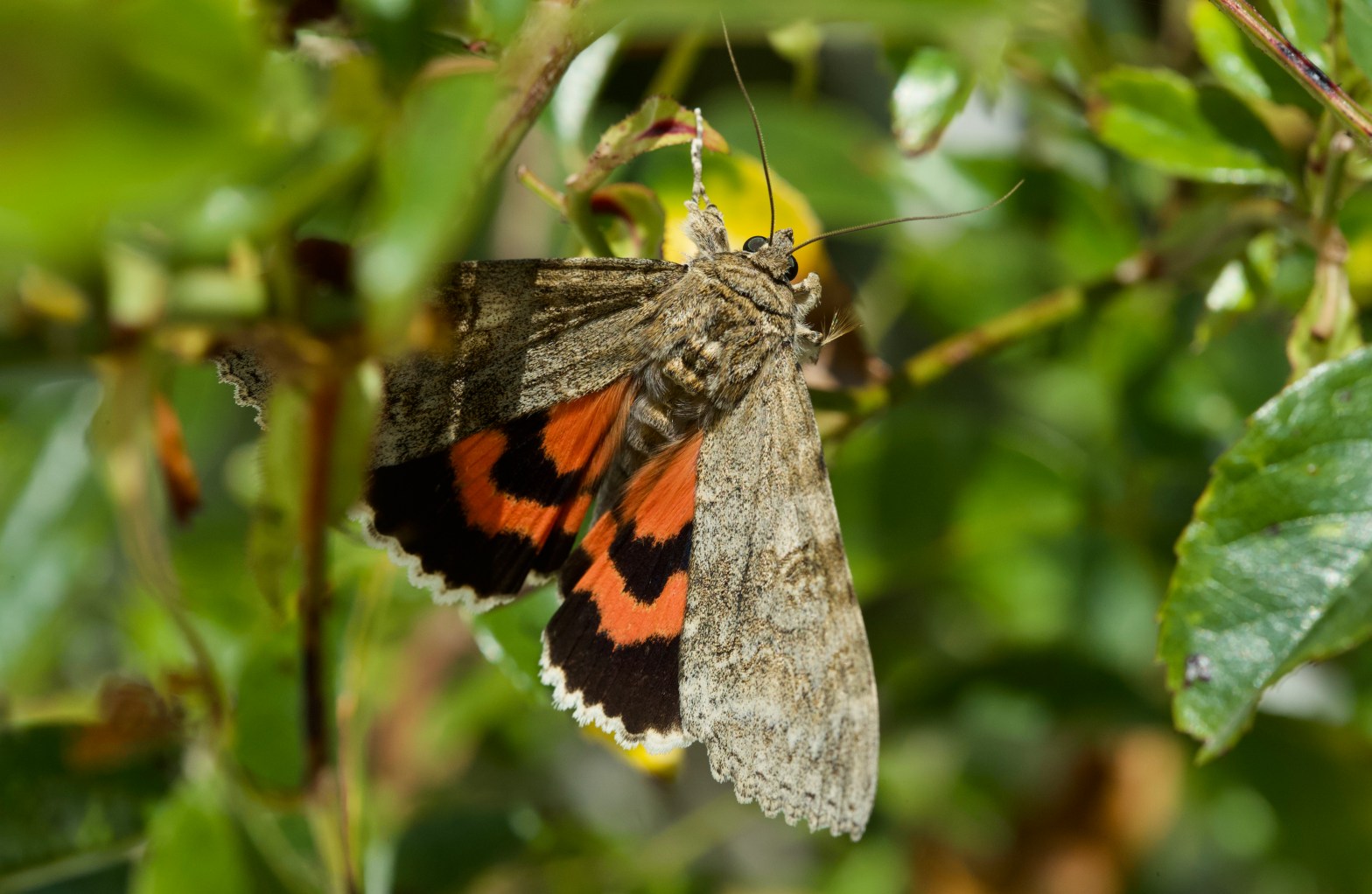 The Red Underwing moth in the top photo was a New For Garden today. It wasn’t in the trap, but lurking nearby. Luckily, I was nimbler with this moth than I was with the closely related Clifden Nonpareil and was able to get a reasonable shot of it it the climbing rose, showing part of the red underwing. It’s a large moth and only just fitted in my biggest pot.