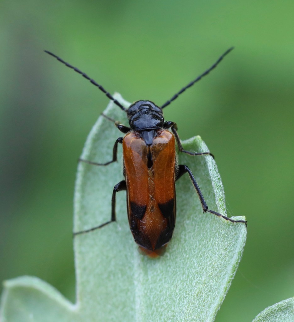 Ivy Bees are parasitised by a beetle, Sternoria annals. I have seen this species in my garden before the females emerge. The beetle larvae give off a pheromone which mimics that of the female Ivy Bee. Male bees are attracted and the larvae attch themsleves to the bee’s body. If that bee mates, the larvae are close enough to move across on to the female’s body and they are then taken back to the underground nest. They move from the bee to the nest wall. It will stay there over the winter, eating the bee egg and its supply of pollen before hatching out the following summer. The temptation is to destroy the parasite, but it is all part of the natural world so the beetles are left. My little colony of Ivy Bees seem to thrive despite the attentions of Sternoria analis. I have simplified its life cycle, but like the ivy, I will create a separate page to show how amazing these invertebrates are.