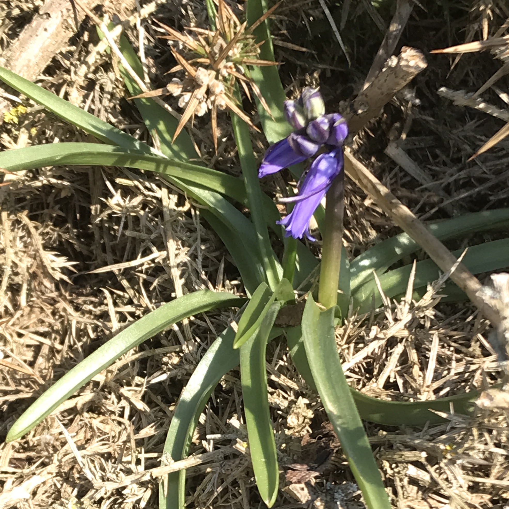 Clockwise from top left: Sand crocus, Romulea columnae, Early Forget-me-not, Myosotis ramosissima, Bluebell, Hyacinthoides non-scripta, Danish Scurvy Grass, Cochlearia danica, Sea Campion, Silene uniflora, Thrift, Armeria maritima, and Western Gorse, Ulex europaeus.
