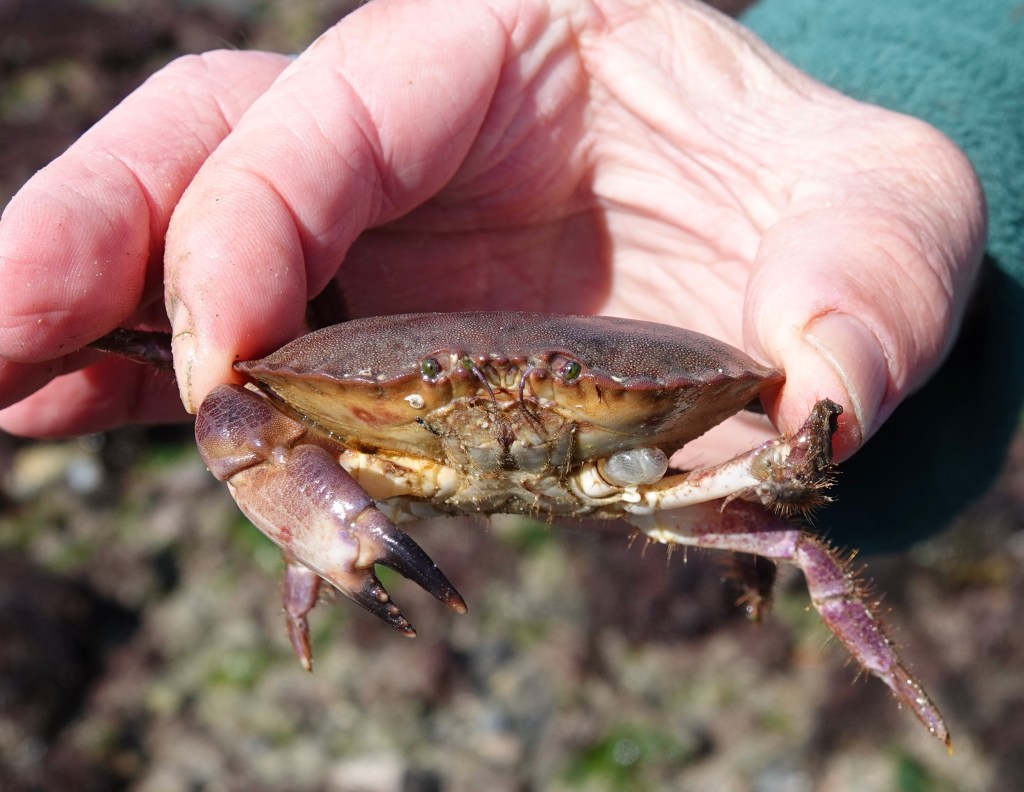 The Velvet Swimming Crab, Necora puber, with its red eyes. This one was surprisingly docile – they feisty and give a good nip.