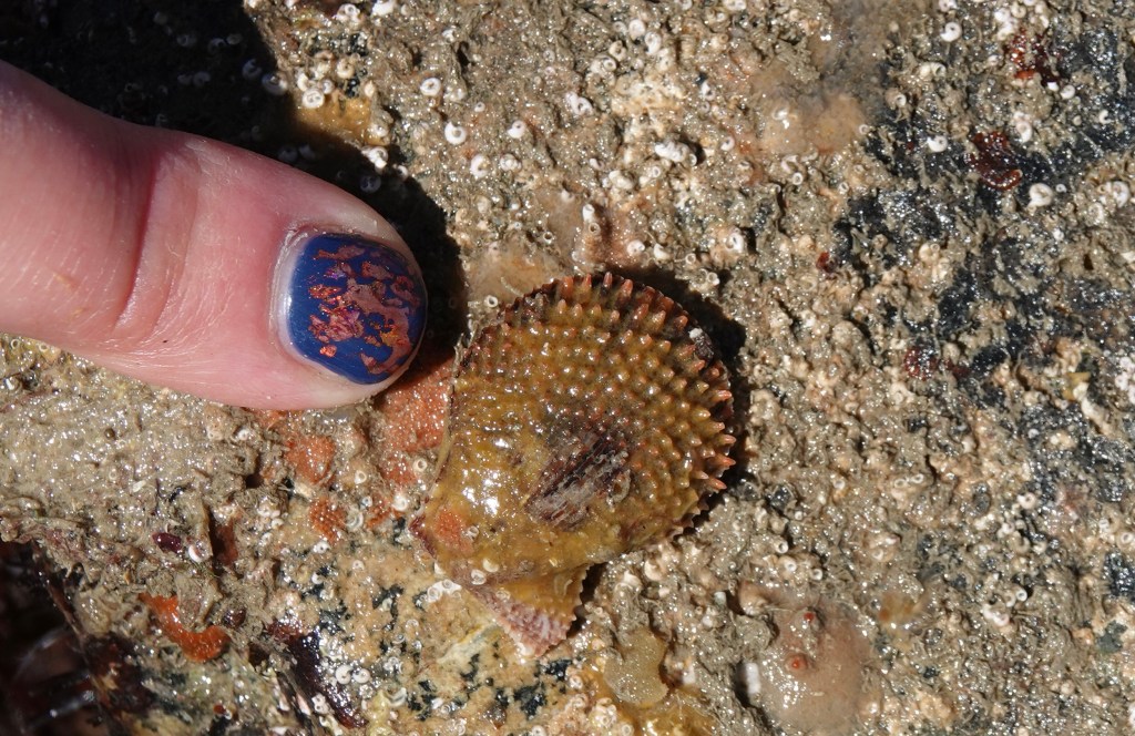 I had to include one of Liz’s snazzy nail varnish, next to a tiny and very ridged Scallop.