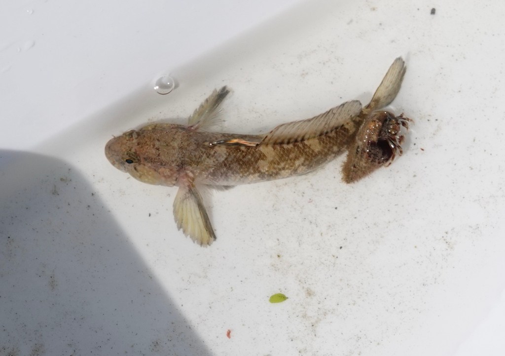 A Butterfish, so called because it’s very slimy and hard to pickup. It survives well out of water. at low tide it will hide in rocky crevices or in seaweed. This one was quickly returned to a shady, damp area by a rock.