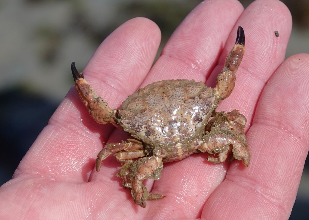 Montagu’s Crab, Xantho hydrophilus, has black tips to its claw, like the Chancre but its shell is very different .