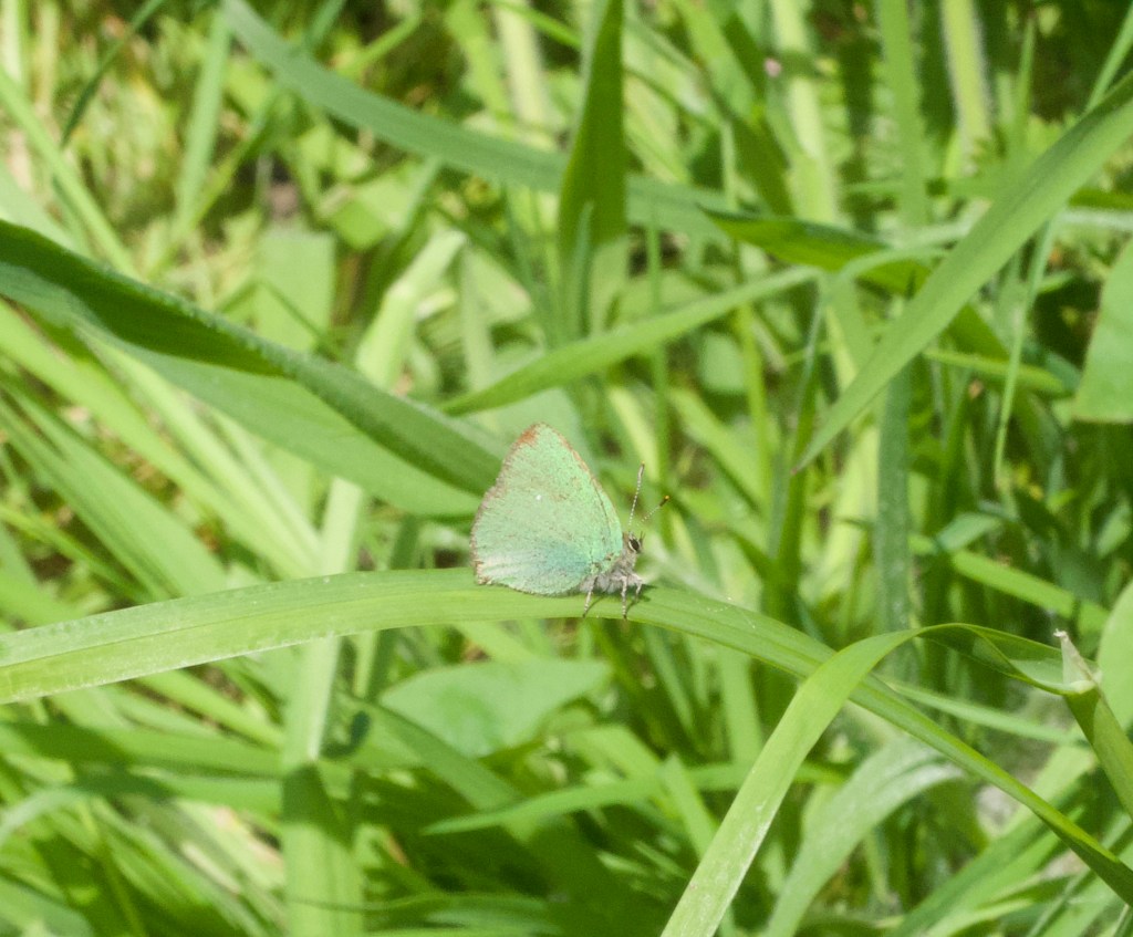 Green Hairstreak from 8th May. This delightful butterfly is more commonly seen on the cliffs. It is the first time I have seen one on my local patch – and thanks to Rachel Ann for showing it to me. They are usually quite flighty, this one was very docile enjoying the sun. Caterpillars feed on Gorse and Bird’s-foot Trefoil so they should be present on L’ancresse Common. They are easily overlooked, so I will be looking more closely on my walks during their flight season.