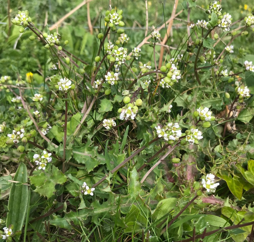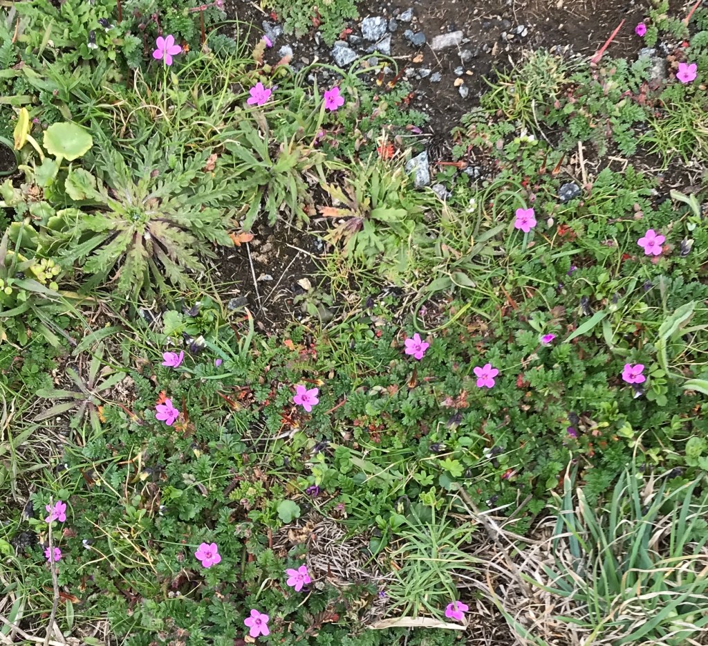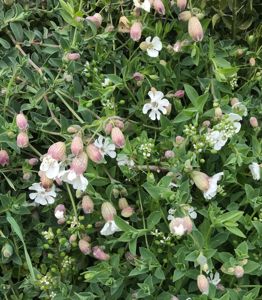 Scurvy Grass is widespread on the cliffs, thriving in the salt-laden air. It is a good source of vitamin C, hence its name as it was used to treat/prevent scurvy. Probably it wasn’t vey popular as the leaves have a tarry taste – maybe the sailors didn’t mind that. I think this species is Danish Scurvey Grass and is doing well in the UK along roads that have been salted in the winter. Passing cars pickup seeds in the tyres and help to distribute them.