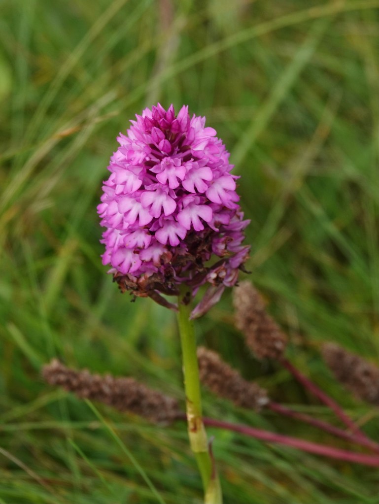 On a second visit to the site I found at lest two Brown Argus butterflies. They can be hard to distinguish from female Common Blue. The main difference when looking at the open wings is the absence of blue scales on the Brown Argus and the orange markings, properly called lunules (as I’ve just discovered) extend to the edge of the wing. When the wings are closed, the Brown Argus has a figure of eight marking, but I did not get a view of the underside. It is good to know that they are found at several locations in Guernsey and have become more established in the past few years.