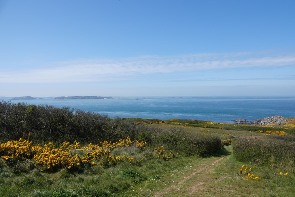 This afternoon we went to L’Eperquerie Common in the north of Sark. A blaze of gold from the gorse – so bright in the sunshine it almost hurt the eyes. This is ideal habitat for Dartford Warbler. Trevor glimpsed one near Dixcart yesterday and there have been other sightings so we had great expectations.