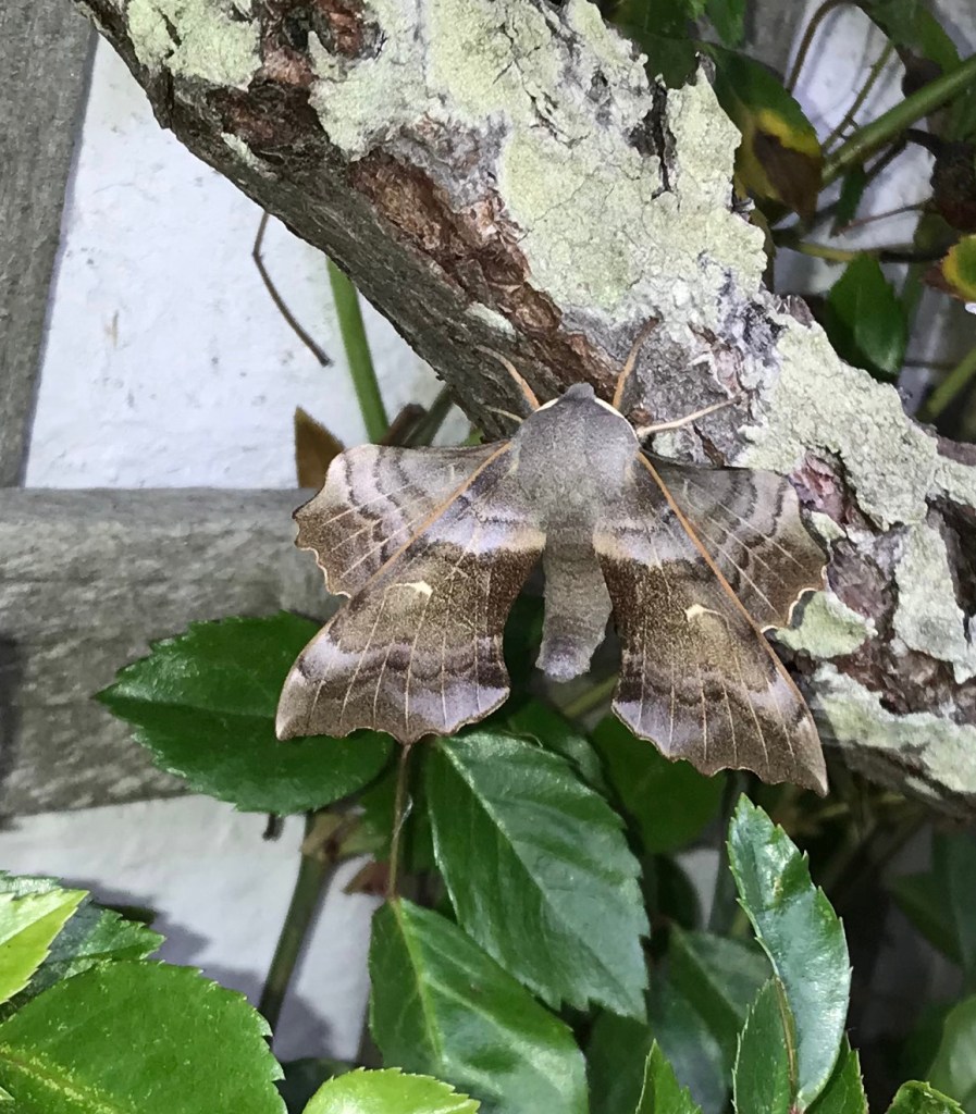 Foodplants: Larvae feed on Poplars and Willow, including Grey Willow which is native to Guernsey and abundant in low-lying areas. Poplar Hawk-moths belong to the Smerinthinae group. The proboscis is small and the adult moths do not feed – I assume this means that they have a very short life on the wing.